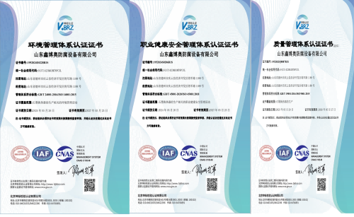 通過了ISO9001質(zhì)量管理體系、ISO14001環(huán)境管理體系、ISO45001職業(yè)健康安全管理體系三體系認證。